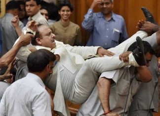BJP MLA Vijender Gupta carried out of Delhi Assembly by marshals